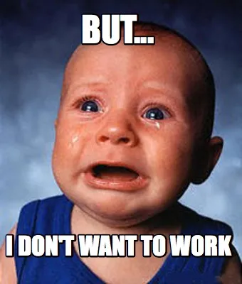 Make your own "But... I don't want to work" meme with MemeCreator's free online meme generator. Add text, stickers, and drawings — then download or share. No watermark, no sign-up required.