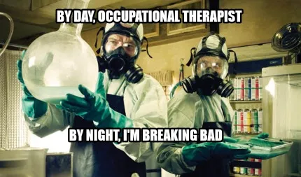 Make your own "By day, Occupational Therapist By night, I'm Breaking Bad" meme with MemeCreator's free online meme generator. Add text, stickers, and drawings — then download or share. No watermark, no sign-up required.