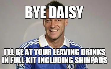 Create Bye daisy i'll be at your leaving drinks in full kit including shinpads Meme