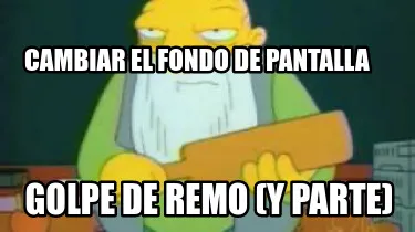 Make your own "Cambiar el fondo de pantalla Golpe de remo (y parte)" meme with MemeCreator's free online meme generator. Add text, stickers, and drawings — then download or share. No watermark, no sign-up required.