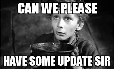 Make your own "Funny can we please have some update sir" meme with MemeCreator's free online meme generator. Add text, stickers, and drawings — then download or share. No watermark, no sign-up required.