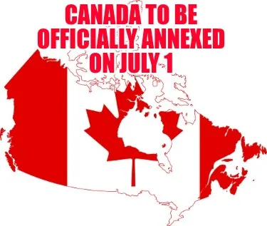 Make your own "Funny Canada to be officially annexed on July 1" meme with MemeCreator's free online meme generator. Add text, stickers, and drawings — then download or share. No watermark, no sign-up required.
