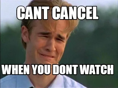 Make your own "Cant cancel when you dont watch" meme with MemeCreator's free online meme generator. Add text, stickers, and drawings — then download or share. No watermark, no sign-up required.