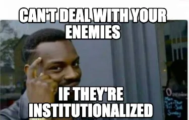 Create Can't deal with your enemies if they're institutionalized Meme