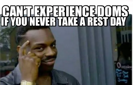 Make your own "Can’t experience doms If you never take a rest day" meme with MemeCreator's free online meme generator. Add text, stickers, and drawings — then download or share. No watermark, no sign-up required.