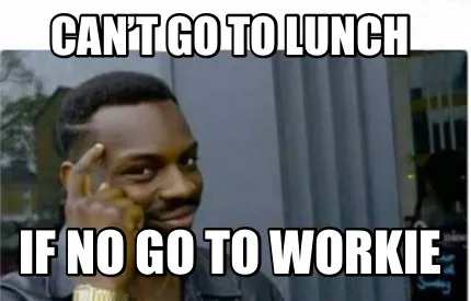 Make your own "Can’t go to lunch If no go to workie" meme with MemeCreator's free online meme generator. Add text, stickers, and drawings — then download or share. No watermark, no sign-up required.