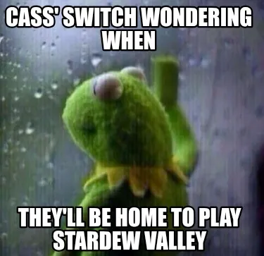 Create Cass' switch wondering when they'll be home to play stardew valley Meme