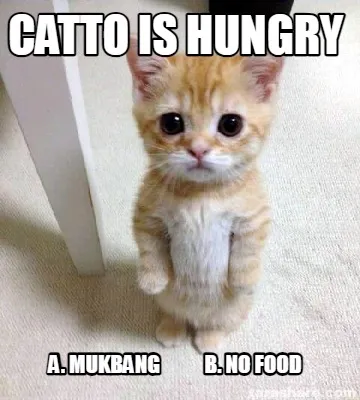 Create Catto is hungry A. Mukbang B. No food Meme