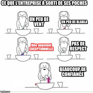 Ce que l'entreprise à sorti de ses poches Un peu de vent Un peu de blabla Une a Meme Template