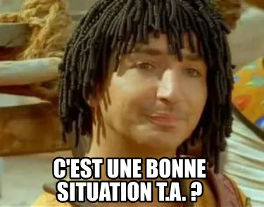 Make your own "C'est une bonne situation T.A. ?" meme with MemeCreator's free online meme generator. Add text, stickers, and drawings — then download or share. No watermark, no sign-up required.