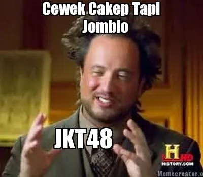 Make your own "Cewek Cakep Tapi Jomblo JKT48" meme with MemeCreator's free online meme generator. Add text, stickers, and drawings — then download or share. No watermark, no sign-up required.