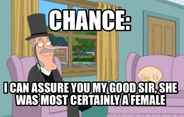 Funny Chance: I can assure you my good sir, she was most certainly a female Meme Template