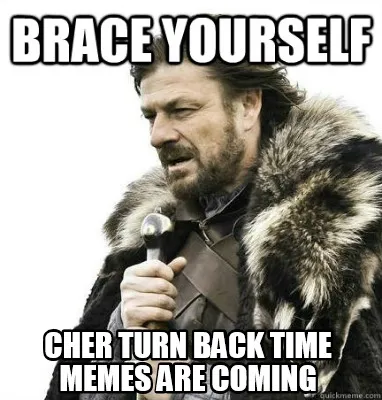 Make your own "CHER TURN BACK TIME" meme with MemeCreator's free online meme generator. Add text, stickers, and drawings — then download or share. No watermark, no sign-up required.