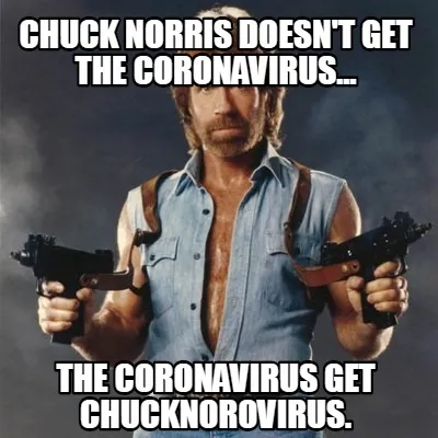 Create Funny Chuck Norris doesn't get the coronavirus... The coronavirus get chucknorovirus. Meme