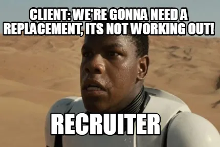 Funny Client: We're gonna need a replacement, its not working out! RECRUITER Meme Template