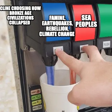 Funny Cline choosing how Bronze Age civilizations collapsed Sea peoples Famine, Eart Meme Template