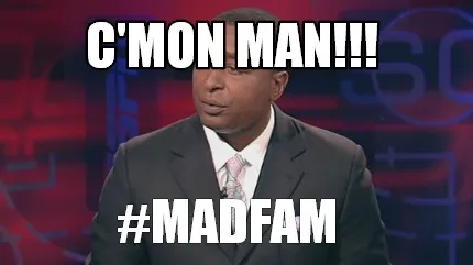 Make your own "C'mon man!!! #madfam" meme with MemeCreator's free online meme generator. Add text, stickers, and drawings — then download or share. No watermark, no sign-up required.