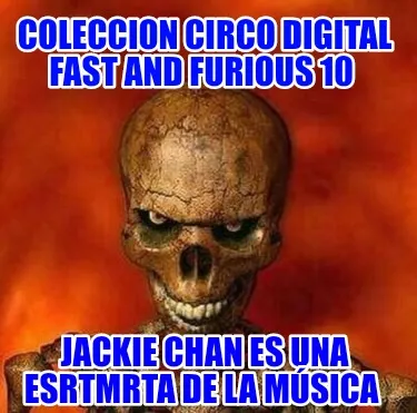 Make your own "Coleccion circo digital fast and furious 10 Jackie chan es una esrtmrta de la m" meme with MemeCreator's free online meme generator. Add text, stickers, and drawings — then download or share. No watermark, no sign-up required.