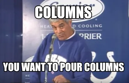 Make your own "Funny Columns You want to pour columns" meme with MemeCreator's free online meme generator. Add text, stickers, and drawings — then download or share. No watermark, no sign-up required.