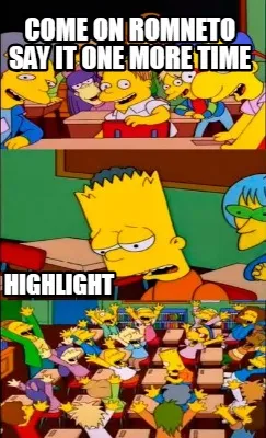 Make your own "Funny Come on Romneto say it one more time highlight" meme with MemeCreator's free online meme generator. Add text, stickers, and drawings — then download or share. No watermark, no sign-up required.