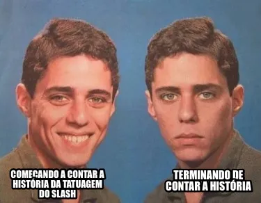 Make your own "Começando a contar a história da tatuagem do slash Terminando de contar a hist" meme with MemeCreator's free online meme generator. Add text, stickers, and drawings — then download or share. No watermark, no sign-up required.