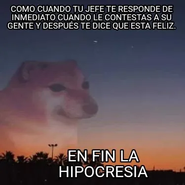 Make your own "Como cuando tu jefe te responde de inmediato cuando le contestas a su gente y de" meme with MemeCreator's free online meme generator. Add text, stickers, and drawings — then download or share. No watermark, no sign-up required.