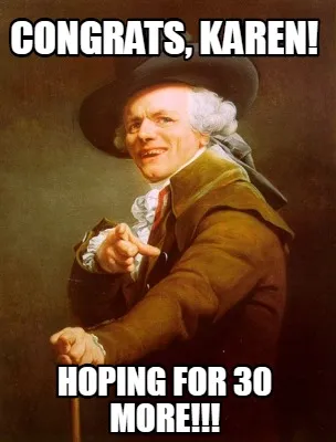 Create Funny congrats, karen! hoping for 30 more!!! Meme