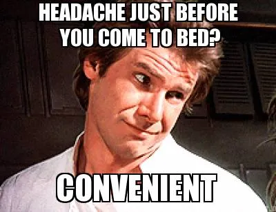 Funny CONVENIENT HEADACHE JUST BEFORE YOU COME TO BED? Meme Template