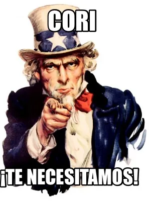 Make your own "Funny Cori ¡Te necesitamos!" meme with MemeCreator's free online meme generator. Add text, stickers, and drawings — then download or share. No watermark, no sign-up required.