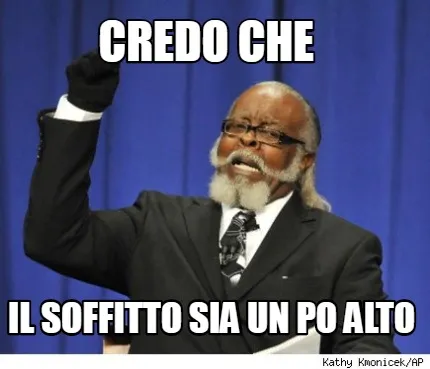 Make your own "Funny credo che il soffitto sia un po alto" meme with MemeCreator's free online meme generator. Add text, stickers, and drawings — then download or share. No watermark, no sign-up required.