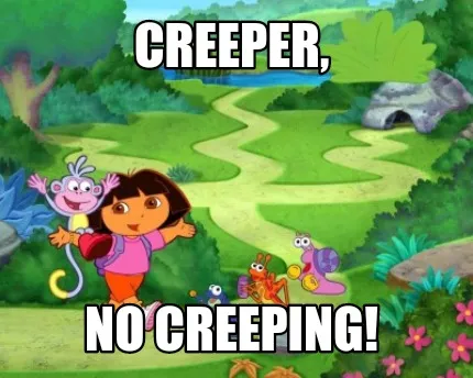 Make your own "Funny Creeper, No creeping!" meme with MemeCreator's free online meme generator. Add text, stickers, and drawings — then download or share. No watermark, no sign-up required.