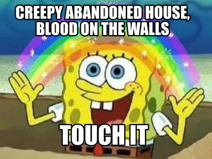 Create Funny creepy abandoned house, blood on the walls touch it Meme