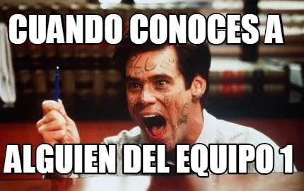 Make your own "Cuando conoces a alguien del equipo 1" meme with MemeCreator's free online meme generator. Add text, stickers, and drawings — then download or share. No watermark, no sign-up required.