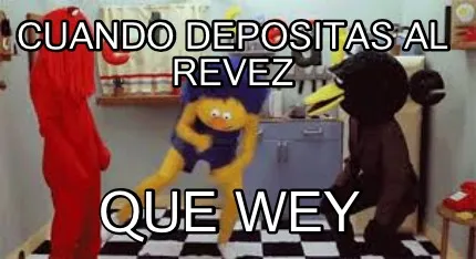 Make your own "Cuando depositas al revez Que wey" meme with MemeCreator's free online meme generator. Add text, stickers, and drawings — then download or share. No watermark, no sign-up required.