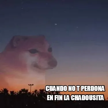 Make your own "Cuando no t perdona en fin la chadousita" meme with MemeCreator's free online meme generator. Add text, stickers, and drawings — then download or share. No watermark, no sign-up required.