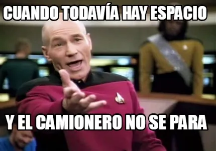 Make your own "Cuando todavía hay espacio y el camionero no se para" meme with MemeCreator's free online meme generator. Add text, stickers, and drawings — then download or share. No watermark, no sign-up required.