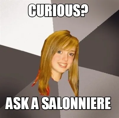 Make your own "Funny curious? ask a Salonniere" meme with MemeCreator's free online meme generator. Add text, stickers, and drawings — then download or share. No watermark, no sign-up required.