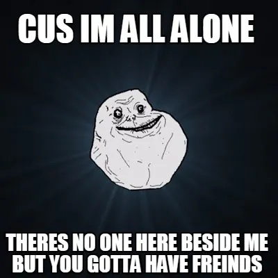 Create Funny CUS IM ALL ALONE THERES NO ONE HERE BESIDE ME BUT YOU GOTTA HAVE FREINDS Meme