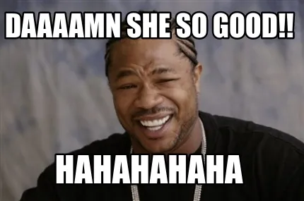 Make your own "Daaaamn she so good!! Hahahahaha" meme with MemeCreator's free online meme generator. Add text, stickers, and drawings — then download or share. No watermark, no sign-up required.