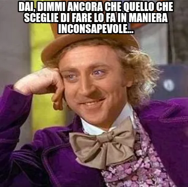 Create Dai, dimmi ancora che quello che sceglie di fare lo fa in maniera inconsapevole. Meme