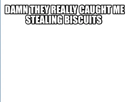 Make your own "Damn they really caught me stealing biscuits" meme with MemeCreator's free online meme generator. Add text, stickers, and drawings — then download or share. No watermark, no sign-up required.