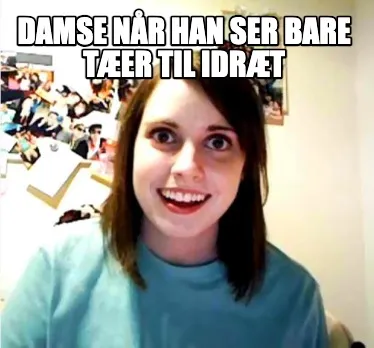 Make your own "Damse når han ser bare tæer til idræt" meme with MemeCreator's free online meme generator. Add text, stickers, and drawings — then download or share. No watermark, no sign-up required.