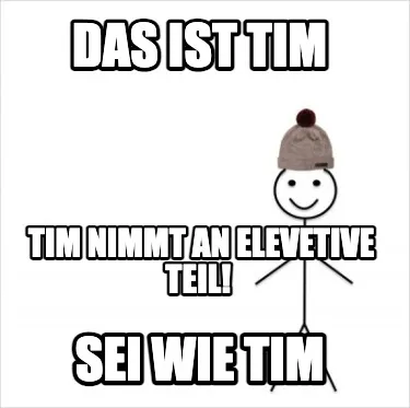 Create Das ist tim Sei wie TIm Tim nimmt an elevetive teil! Meme