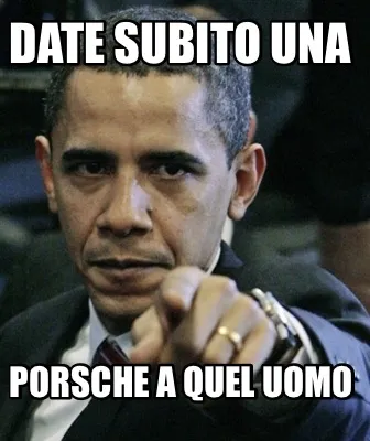 Make your own "DATE SUBITO UNA PORSCHE A QUEL UOMO" meme with MemeCreator's free online meme generator. Add text, stickers, and drawings — then download or share. No watermark, no sign-up required.