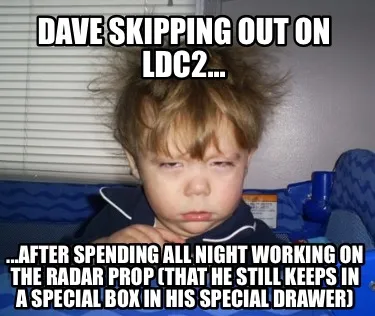 Create DAVE SKIPPING OUT ON LDC2... ...AFTER SPENDING ALL NIGHT WORKING ON THE RADAR PR Meme