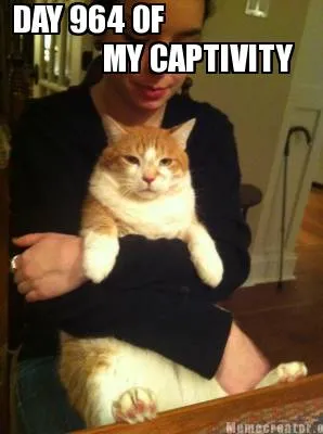 Make your own "DAY 964 OF MY CAPTIVITY" meme with MemeCreator's free online meme generator. Add text, stickers, and drawings — then download or share. No watermark, no sign-up required.