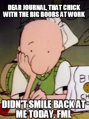 Funny Dear Journal, that chick with the big Boobs at work Didn't Smile back at me toda Meme Template