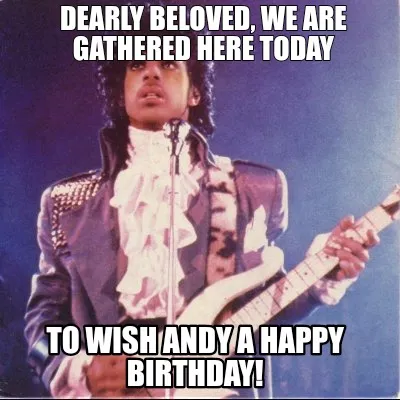 Create Dearly beloved, we are gathered here today To wish Andy a happy birthday! Meme