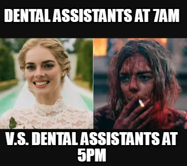 Create Dental Assistants at 7am V.s. Dental assistants at 5pm Meme