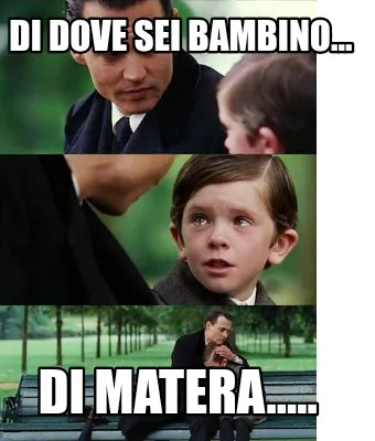 Make your own "Di dove sei bambino... Di Matera....." meme with MemeCreator's free online meme generator. Add text, stickers, and drawings — then download or share. No watermark, no sign-up required.